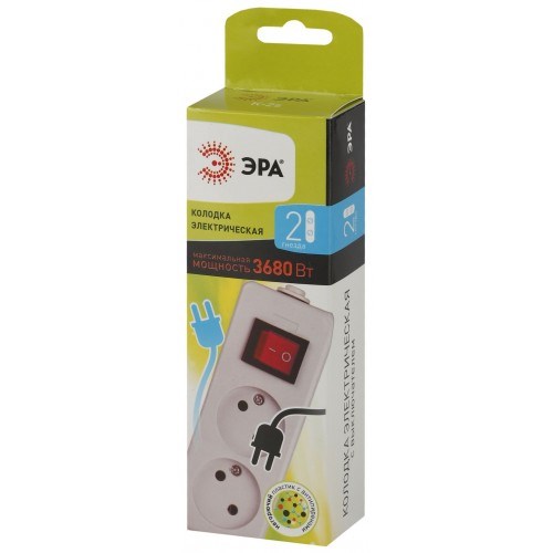 Колодка ЭРА K-2s 2 розетки без зазeмления с выключателем