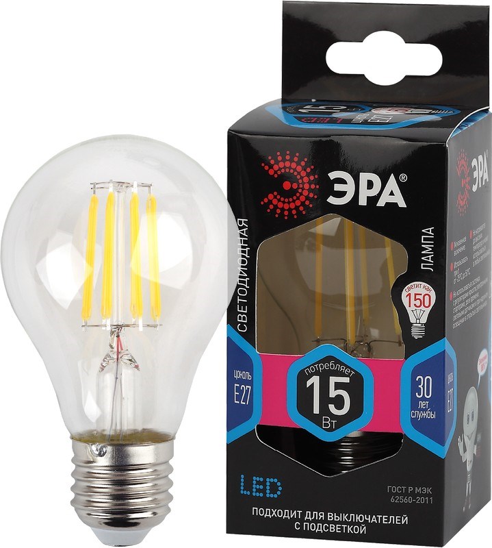 Лампа светодиодная филамент A60 E27 15Вт A60 4000К Эра