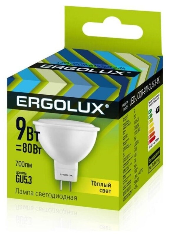 Лампа светодиодная LED-JCDR-9W-GU5.3-4K JCDR 9Вт GU5.3 4500К 172-265В Ergolux