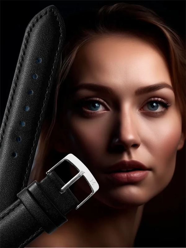 Ремешок для часов NAGATA кожзам чёрный (ушки 22мм) L22