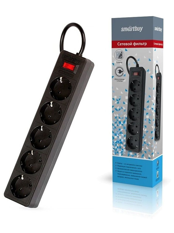 Сетевой фильтр Smartbuy SBSP 5р.С/З 10A с выкл. 3.0м черный